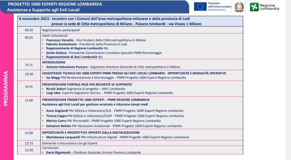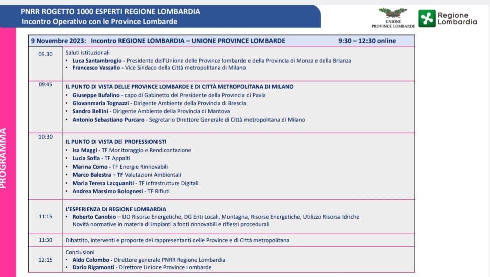 Incontro di Province lombarde e Città metropolitana di Milano con i professionisti PNNR